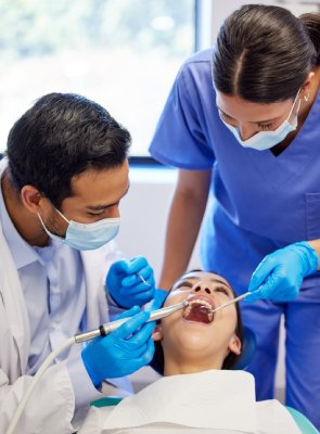 تشمل الإجراءات الجراحية داخل الفم مثل قلع الأسنان المنطَمرة و استئصال الأكياس .